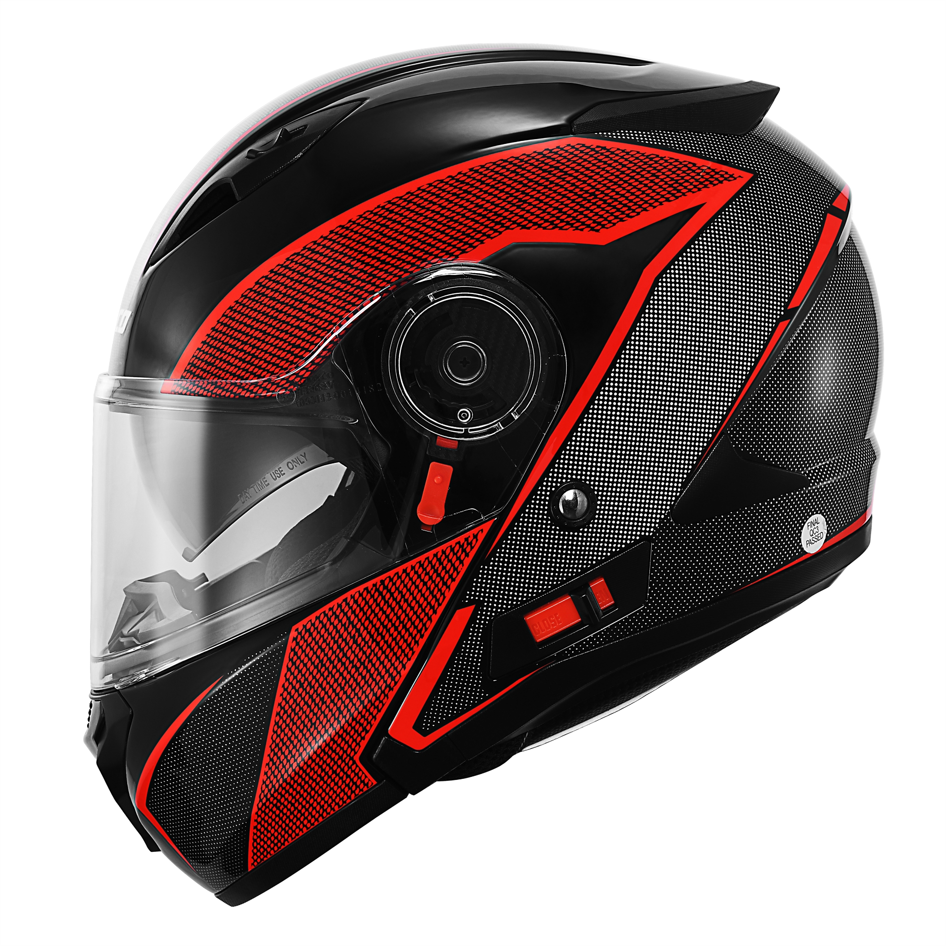 FAZER FX 211 Fantastic Red full face motosiklet kaskı; ABS dış kabuğu, siyah cam güneş vizörü ve sökülüp yıkanabilir iç pedleriyle güvenli ve konforlu sürüş sunar.